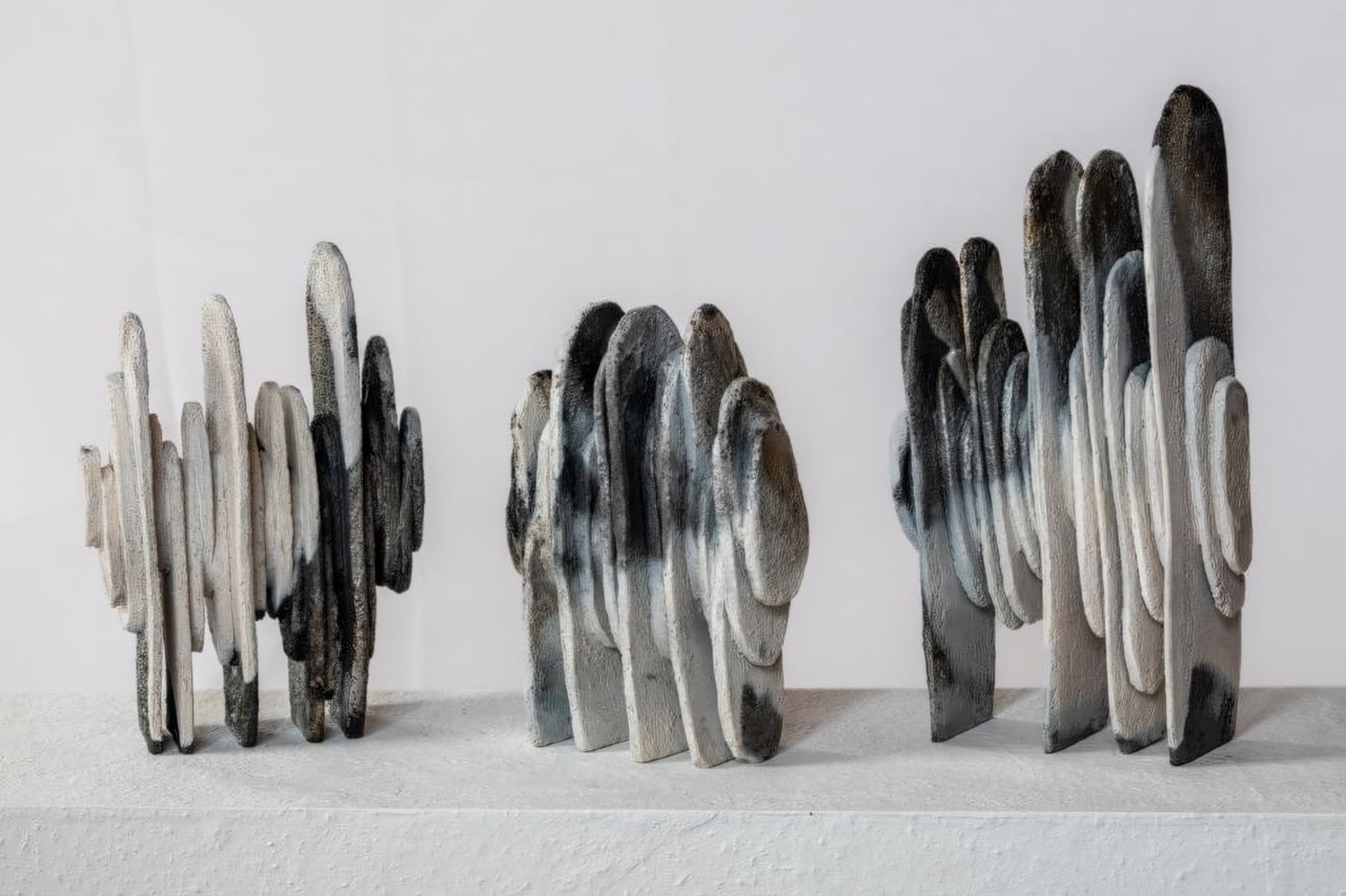 Die Urgewalt des Rauch- und Kapselbrandes bestimmt das Erscheinungsbild dieser Tonskulpturen.