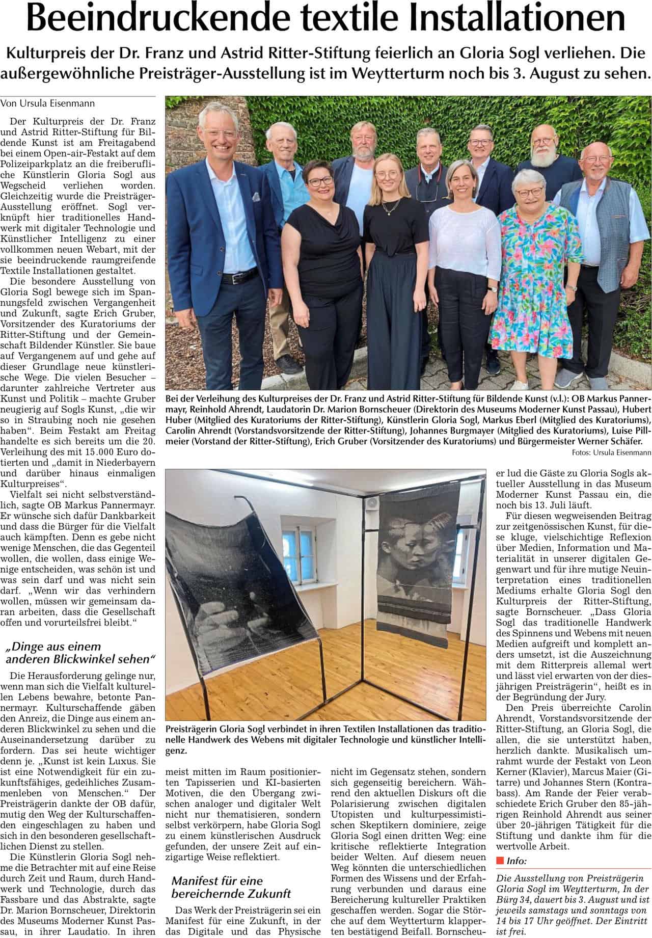 Preisträgerin des Kulturpreises der Dr. Franz und Astrid Ritter-Stiftung